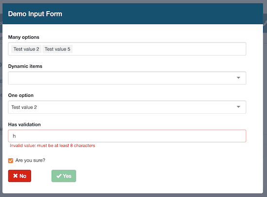 Buttons can display “Are you sure?” messages when clicked. Buttons can also prompt for justification or other custom data, which can be provided to a Beanshell script (if that is the action your Button uses) once the user enters appropriate responses.